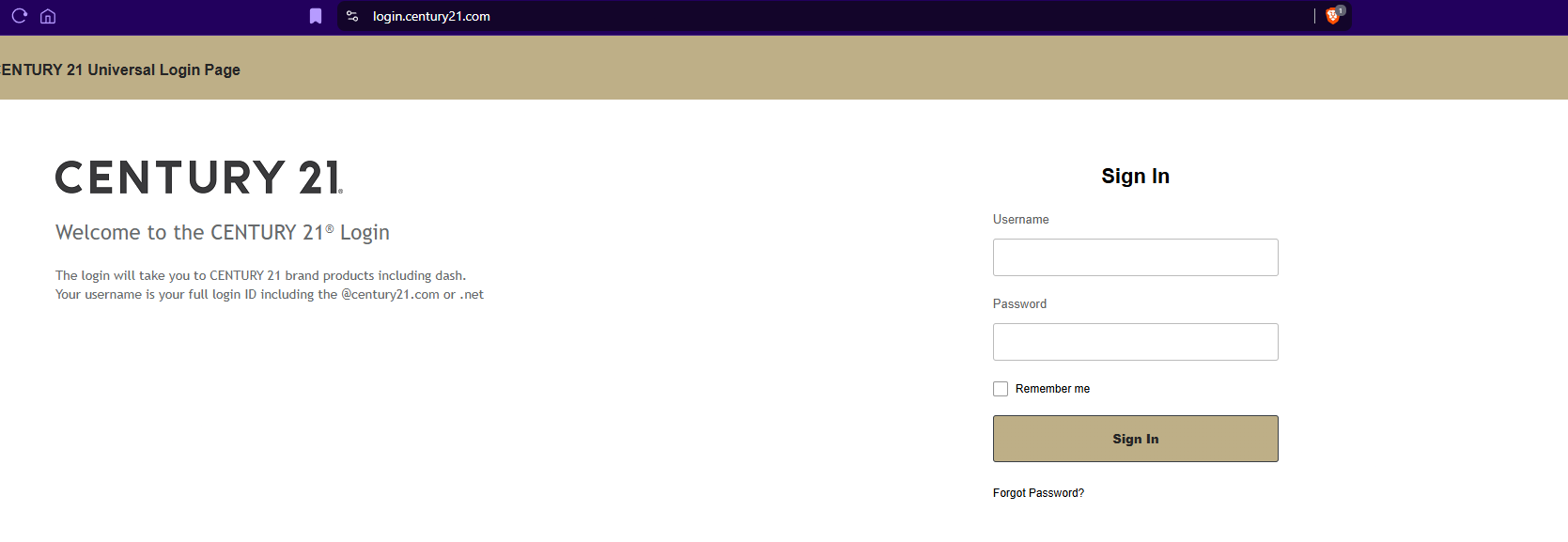 Please use your Century 21 credentials (typically firstname.lastname@century21.com) to log in.